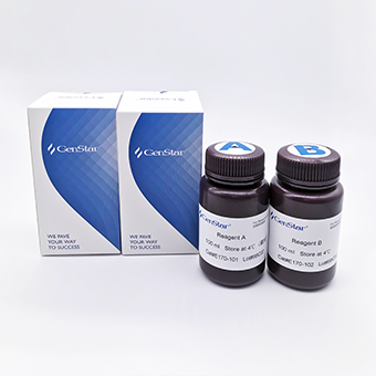 StarSignal 超敏化學(xué)發(fā)光檢測(cè)試劑的發(fā)光底物是作為 HRP 敏感的色原底物,其檢測(cè)水平可達(dá)飛克級(jí)。該底物分為 A 和 B 兩種組分,混合后可在 4℃ 穩(wěn)定放置 7 天。