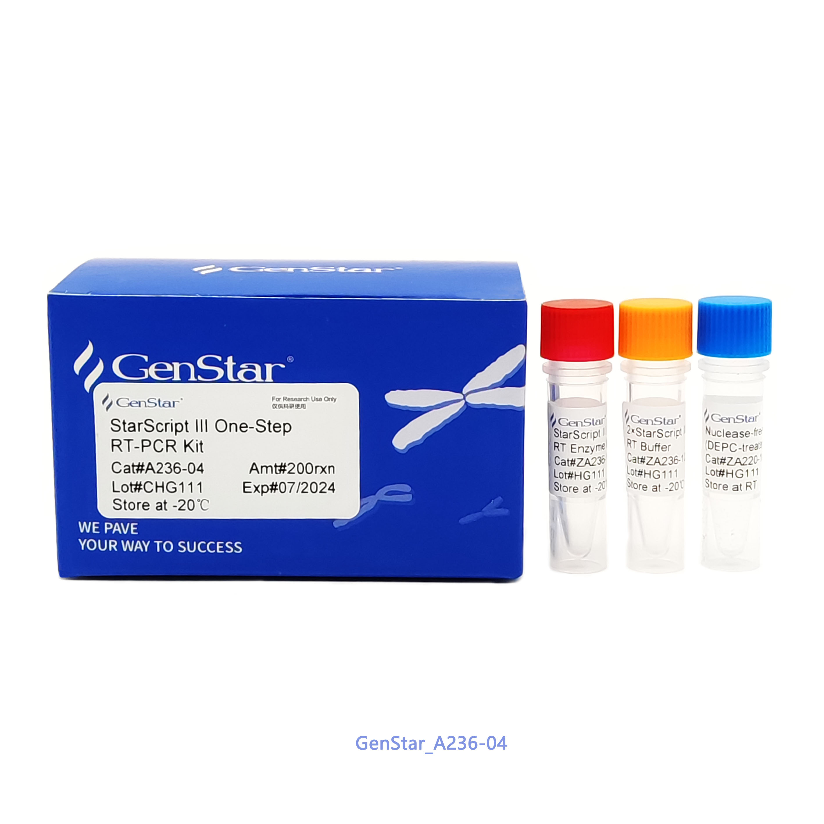 StarScript III One-Step RT-PCR Kit 是高效 cDNA 合成和 PCR 擴增的一步法 RT-PCR 試劑盒,用于以 RNA 為模板,通過特異引物,反轉(zhuǎn)錄和 PCR 反應(yīng)均在一個反應(yīng)體系中完成,降低移液操作,減少操作誤差和污染風(fēng)險。本產(chǎn)品包含了一步法 RT-PCR 反應(yīng)所必需的酶和反應(yīng)體系,整合 StarScript III Reverse Transcriptase 以及 Taq plus DNA Polymerase 的優(yōu)越性能,配合經(jīng)過優(yōu)化的緩沖體系,最大程度的減少了反轉(zhuǎn)錄酶對擴增反應(yīng)的抑制,RT-PCR 檢測靈敏度可達(dá)到 1 pg 總 RNA。 反應(yīng)液中不含染料,PCR 程序結(jié)束后需要添加上樣緩沖液才能上樣電泳。