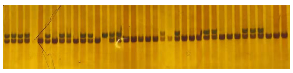以水稻嫩葉裂解液為模板,使用 A008 進行 PCR 擴增,結(jié)果顯示 A008 擴增產(chǎn)物適用于 PAGE 凝膠電泳且有效完成基因分型。