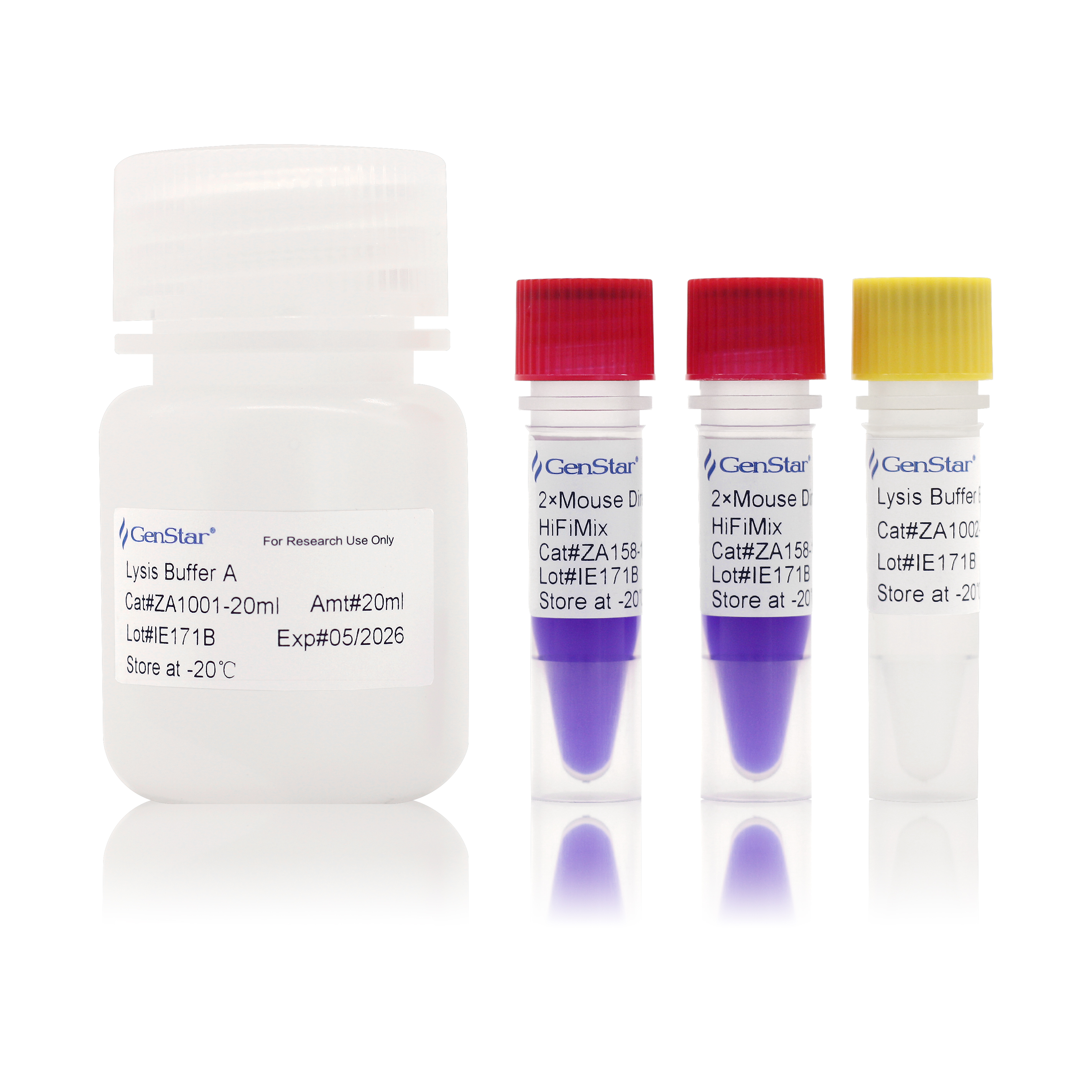 本產(chǎn)品包含小鼠組織粗提和后續(xù) PCR 擴(kuò)增的整套試劑,適用于小鼠基因型快速鑒定。采用獨(dú)特的裂解液可從小鼠尾巴、耳朵以及腳趾等組織中快速釋放基因組 DNA,無(wú)需純化,可直接用于后續(xù)的 PCR 擴(kuò)增和鑒定,極大縮短了實(shí)驗(yàn)耗時(shí)。