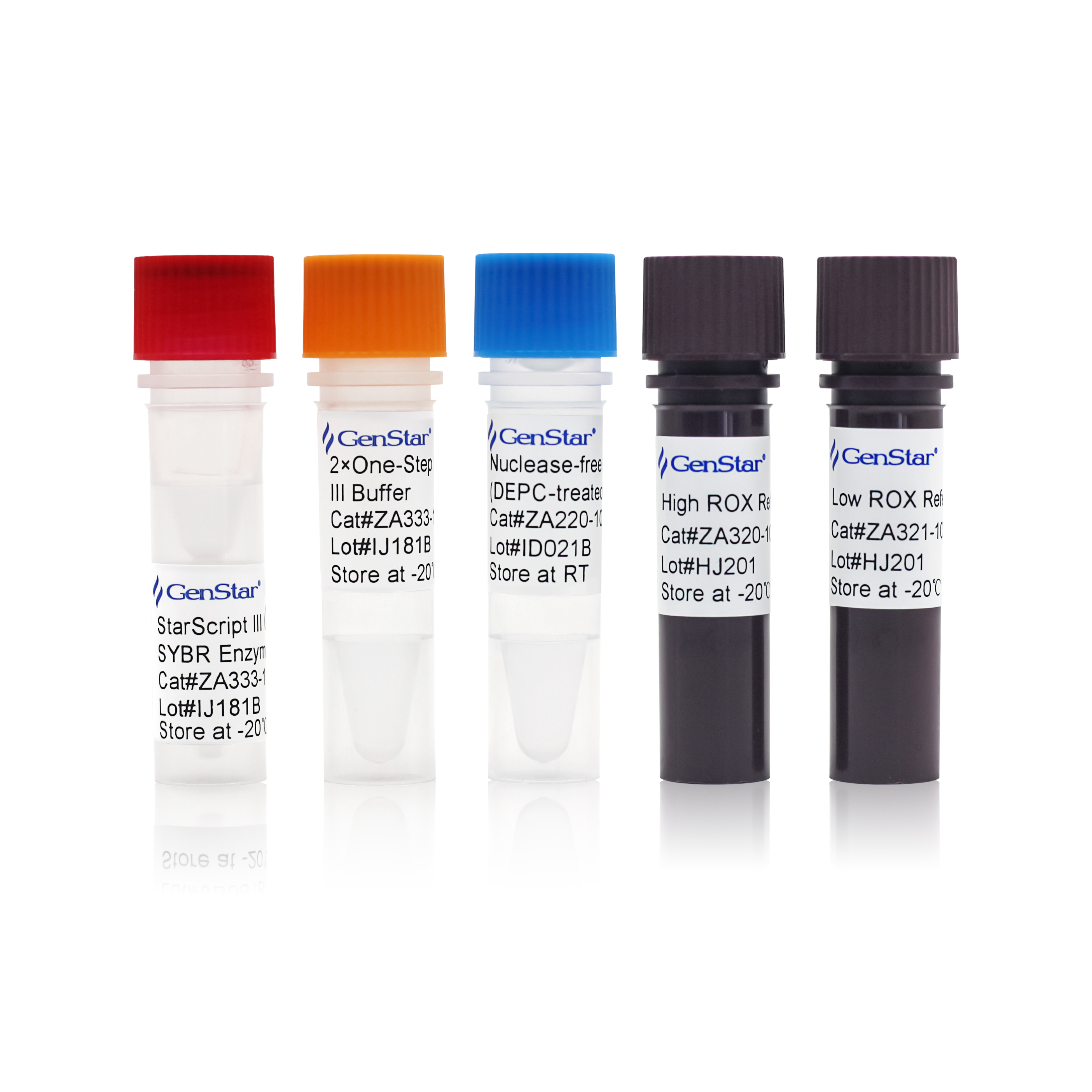 StarScript III One-Step qRT-PCR SYBR Kit 是采用 SYBR Green I 嵌合熒光法進(jìn)行一步法實(shí)時(shí)熒光定量檢測(cè)的專用試劑盒。使用本制品進(jìn)行 Real Time RT-PCR 反應(yīng)時(shí)以提取的 RNA 為模版,在同一反應(yīng)管內(nèi)連續(xù)進(jìn)行反轉(zhuǎn)錄和熒光定量檢測(cè),操作簡(jiǎn)單,并能有效防止污染。基于 StarScript III 反轉(zhuǎn)錄酶、抗體型 HotStart Taq DNA 聚合酶、配合優(yōu)化的 Buffer 體系,對(duì)于二級(jí)結(jié)構(gòu)復(fù)雜和 GC 含量高的 RNA 模板擴(kuò)增效果好,非常適合于 RNA 病毒等微量目標(biāo)基因的檢測(cè)。