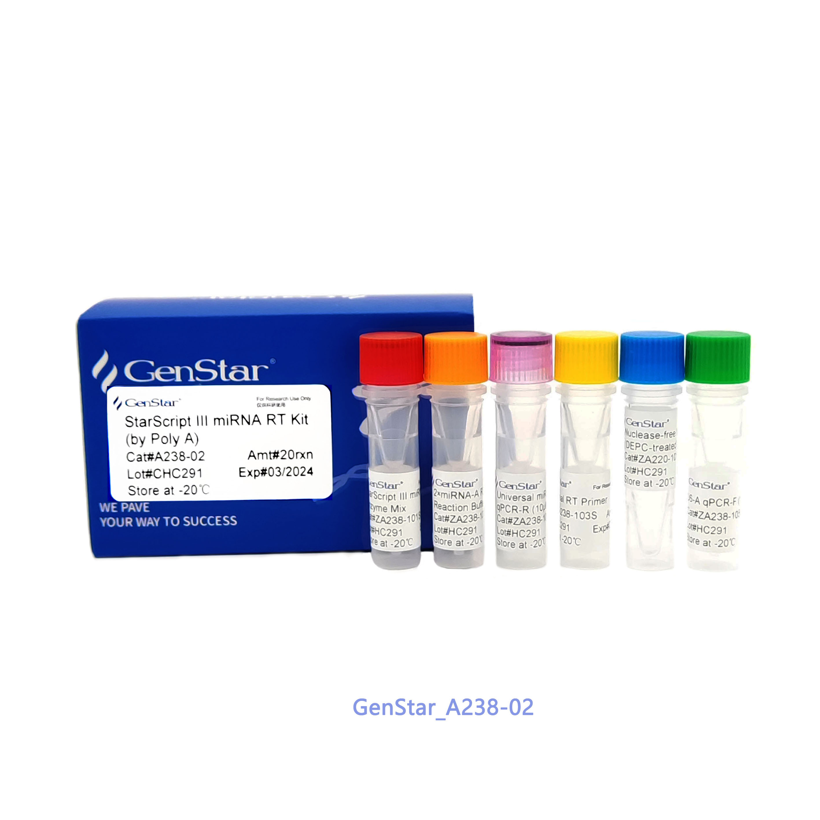 本試劑盒適用于加尾法 microRNA(簡(jiǎn)稱(chēng) miRNA)cDNA 第一鏈合成的專(zhuān)用試劑盒,包含了 miRNA 加 A 尾反應(yīng)和逆轉(zhuǎn)錄反應(yīng)的所有原料,并經(jīng)過(guò)精心優(yōu)化,可保證 miRNA 3' 末端的 Poly(A) 修飾過(guò)程和逆轉(zhuǎn)錄過(guò)程同時(shí)高效進(jìn)行。StarScript III miRNA-A Enzyme Mix 中含有 Poly(A) Polymerase(簡(jiǎn)稱(chēng) PAP)和 StarScript III 反轉(zhuǎn)錄酶。PAP 加 A 尾效率高,可特異性識(shí)別單鏈 RNA,有效避免具有雙鏈或者莖環(huán)結(jié)構(gòu)的 miRNA 前體的逆轉(zhuǎn)錄反應(yīng);StarScript III 反轉(zhuǎn)錄酶經(jīng)過(guò)改造,喪失了 RNase H 活性,增加了與 RNA 的親和力,使得 miRNA 的逆轉(zhuǎn)錄效率和靈敏度大幅提高。