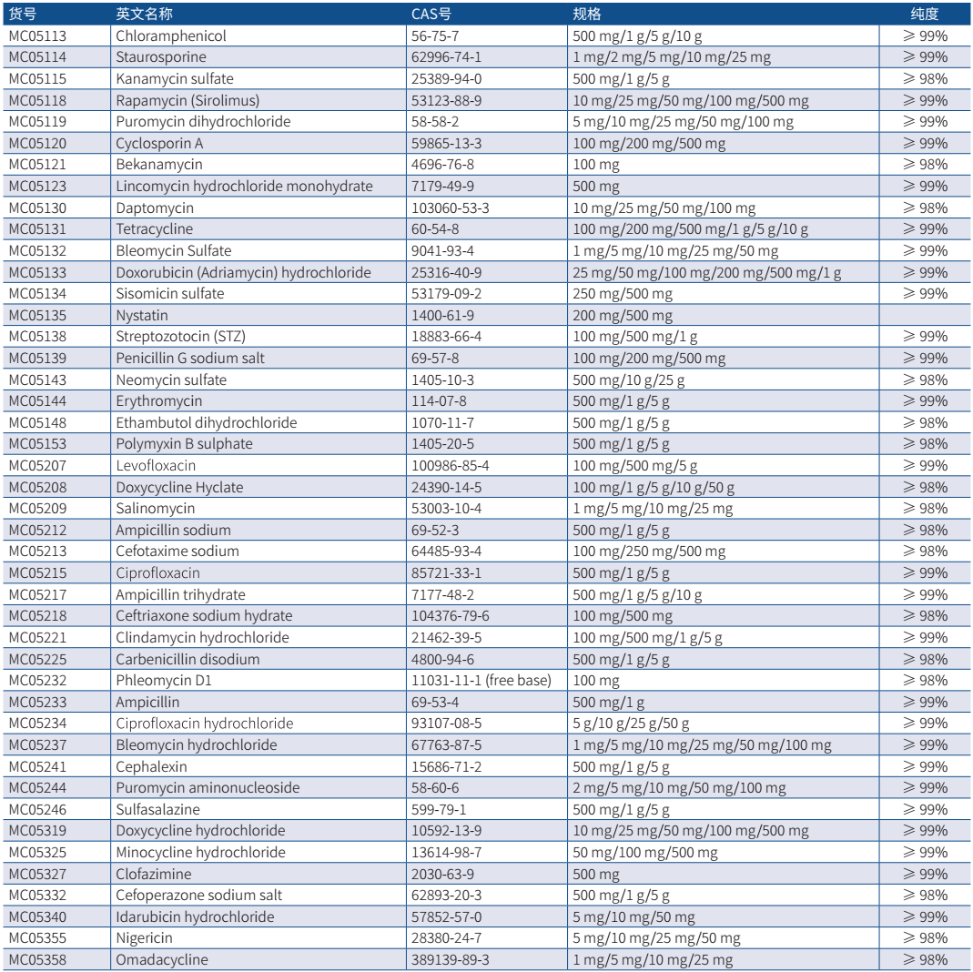 本界面只顯示部分產(chǎn)品信息,若想獲取更多小分子系列產(chǎn)品信息,請聯(lián)系我們銷售或致電技術(shù)支持熱線:400-666-3332