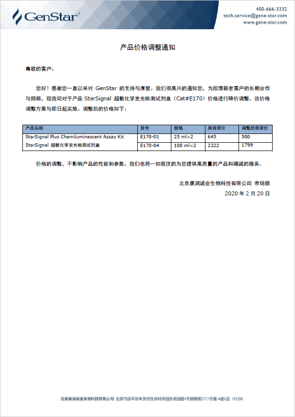 產品價格調整通知
