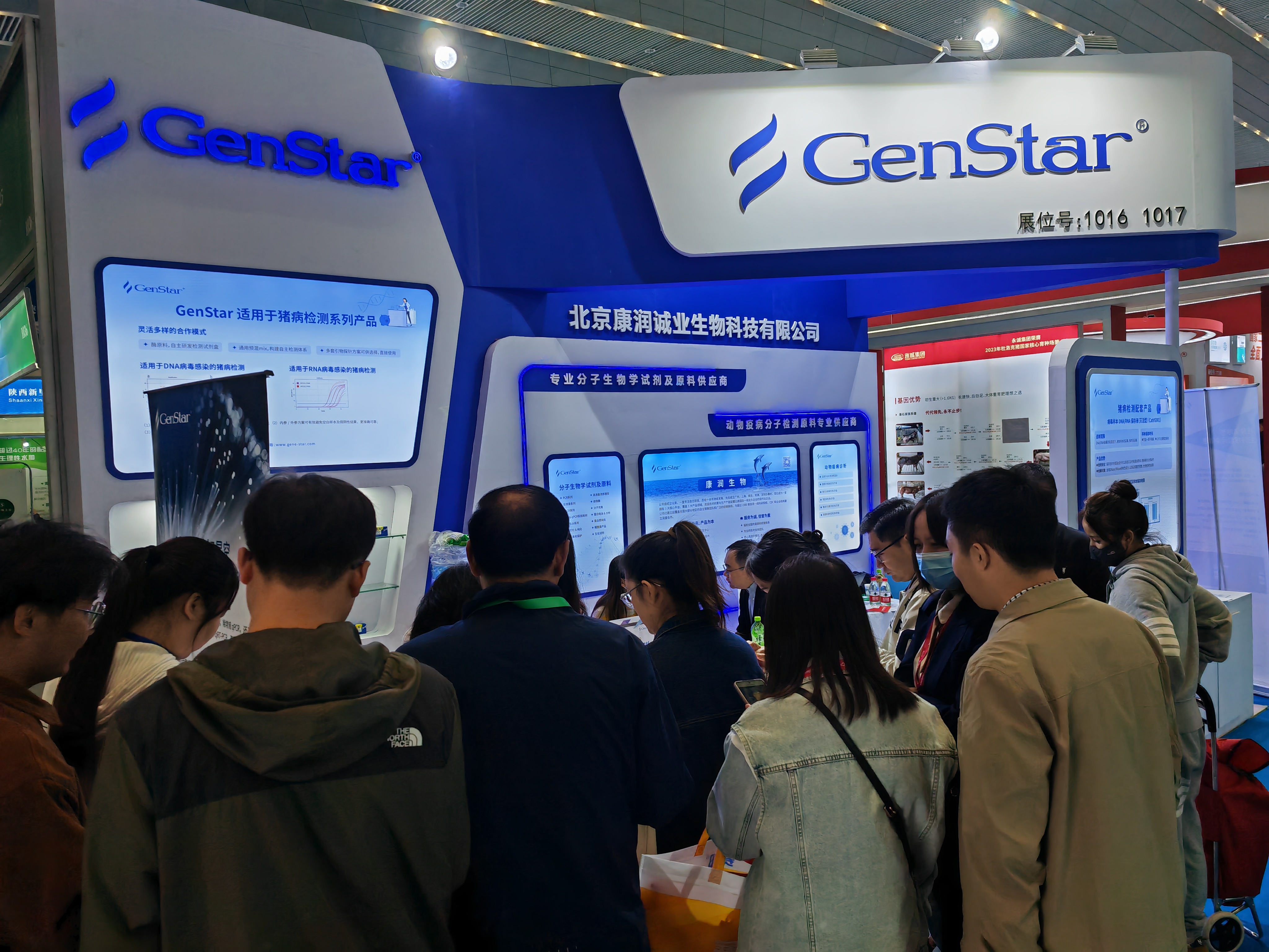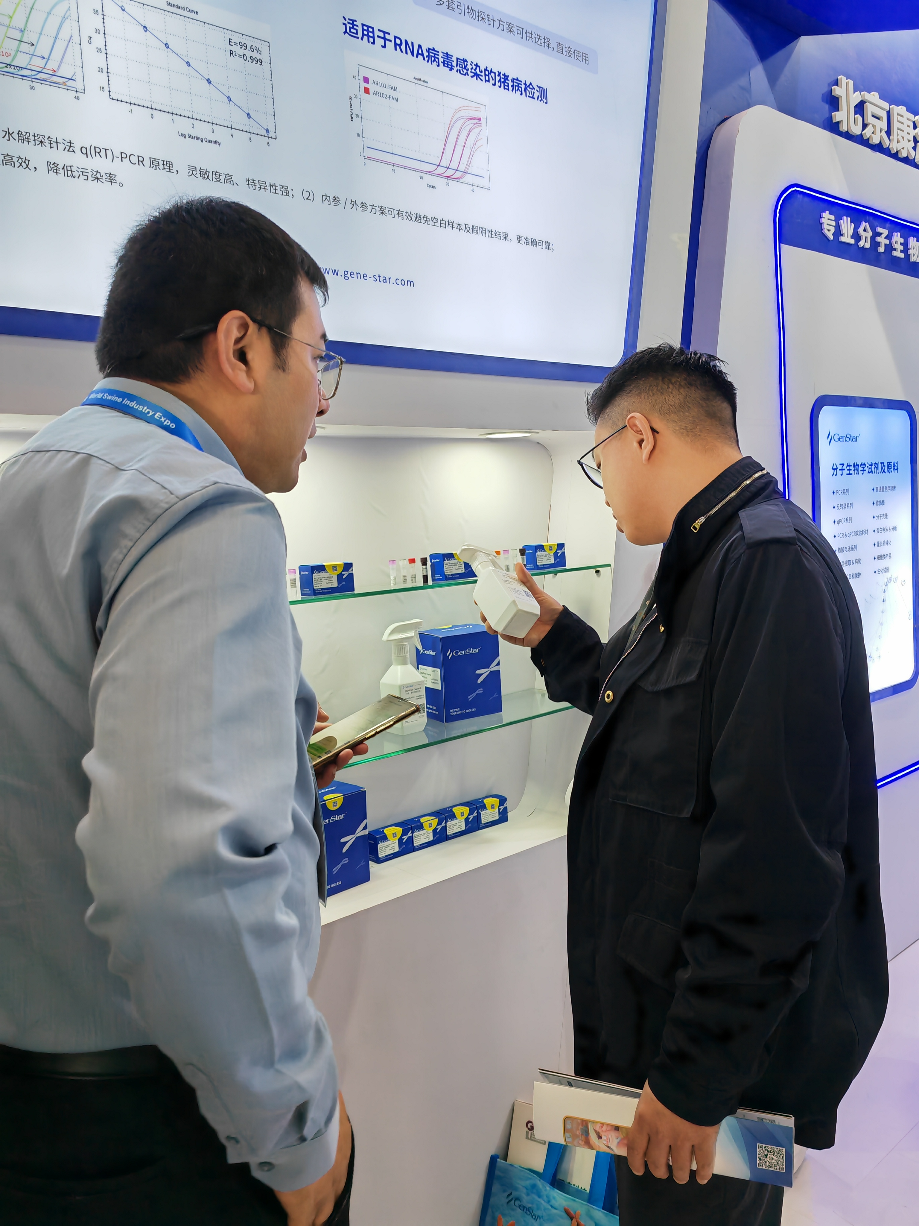本次展會(huì),GenStar集中展示了針對 DNA 病毒及 RNA 病毒檢測的探針法實(shí)時(shí)熒光定量 PCR 反應(yīng)預(yù)混液、試劑盒、酶原料等配套產(chǎn)品,可應(yīng)用于非洲豬瘟、豬藍(lán)耳、豬流行性腹瀉等豬病的科學(xué)研究,為 IVD 企業(yè)豬疫病檢測試劑盒開發(fā)提供原料。