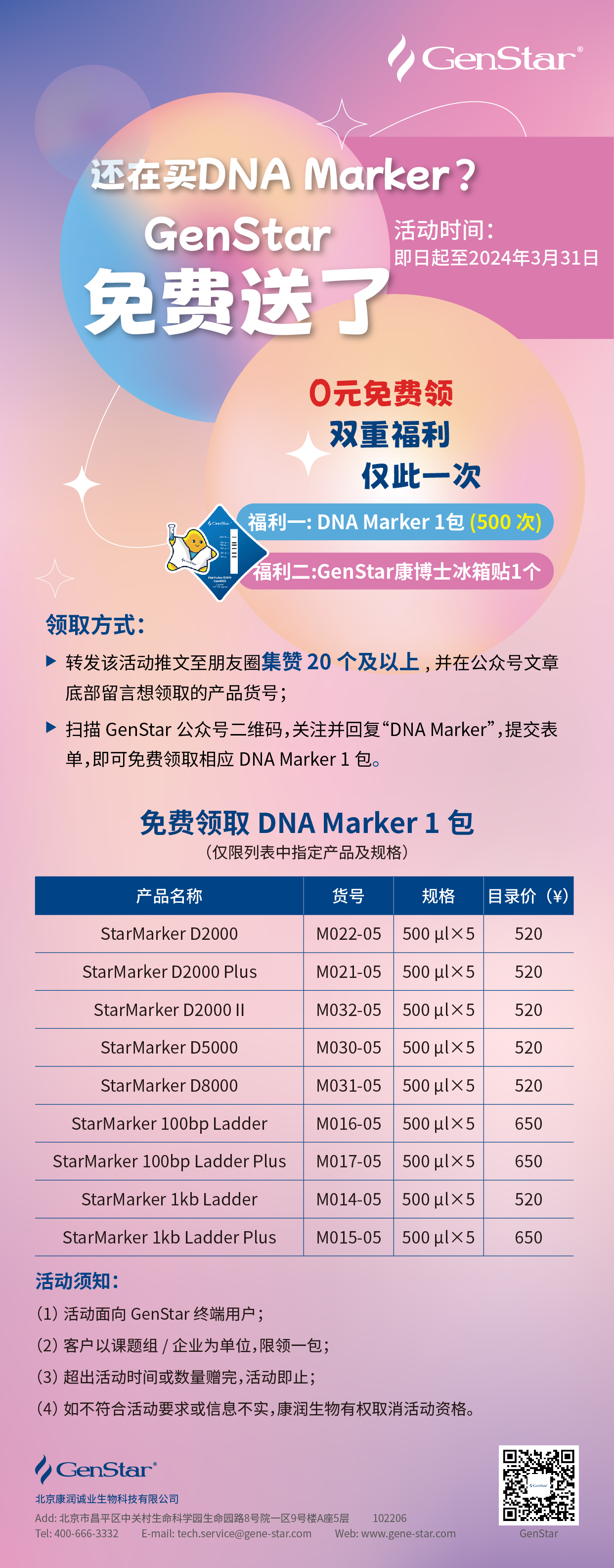 福利來襲 | 還在買DNA Marker?GenStar免費(fèi)送了!