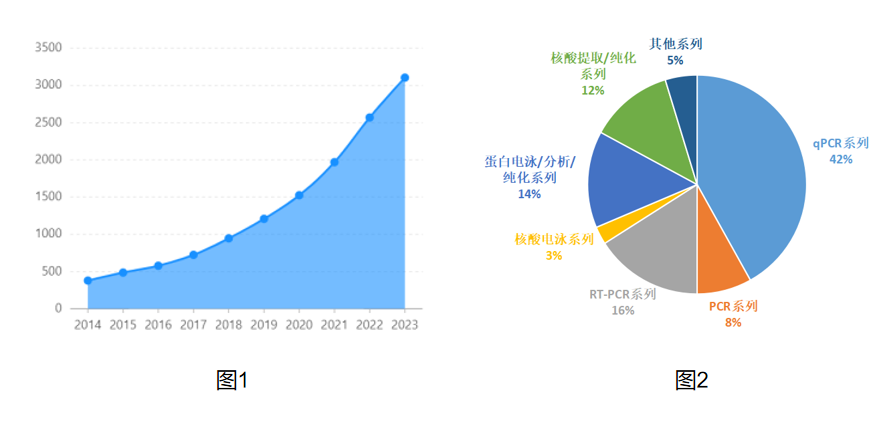 根據(jù)知了窩平臺對GenStar產(chǎn)品進(jìn)行的論文統(tǒng)計(jì),近十年間,SCI論文引用量增長趨勢逐年變快(圖1)。2023年GenStar產(chǎn)品發(fā)表SCI總數(shù)近600篇,最高IF 64.8,平均IF>5。IF 64.8的文章用到了GenStar Western blot產(chǎn)品,StarSignal高敏化學(xué)發(fā)光檢測試劑盒(Cat#E171)。qPCR產(chǎn)品發(fā)表文章數(shù)量穩(wěn)居第一(圖2),占比42%,發(fā)表數(shù)量223篇。
