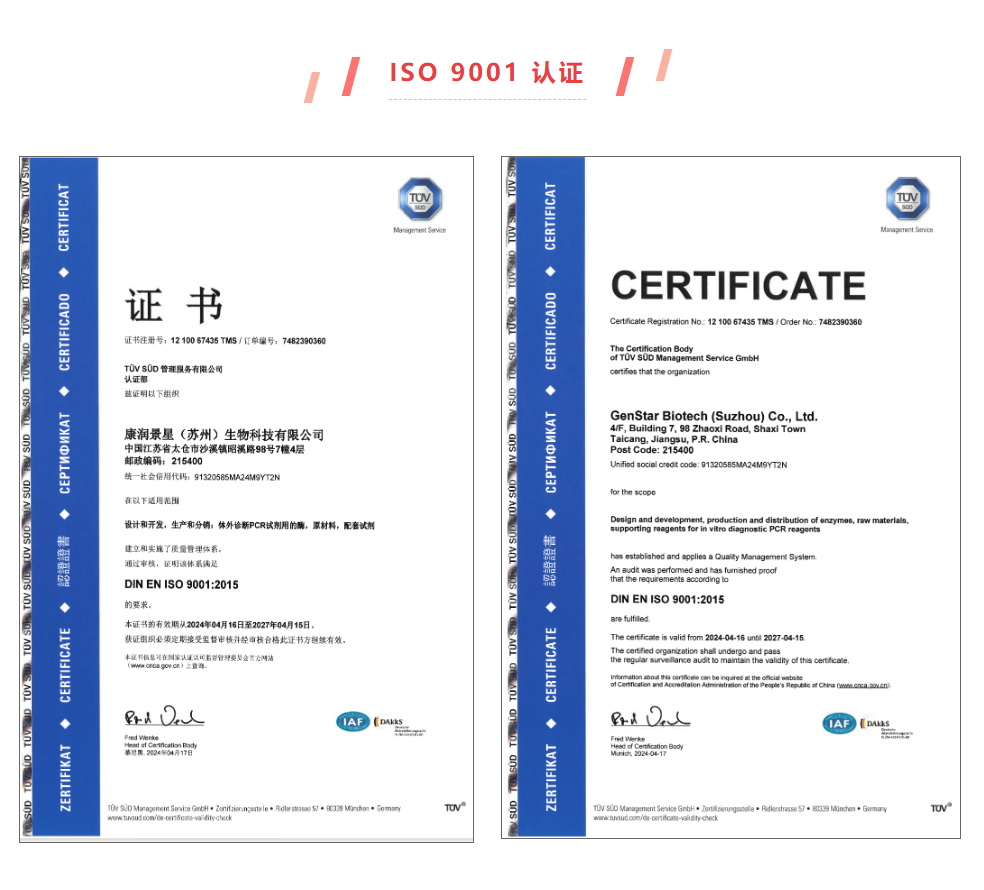喜報(bào) | 經(jīng)TüV南德認(rèn)定,GenStar 再獲質(zhì)量管理體系“雙認(rèn)證”
