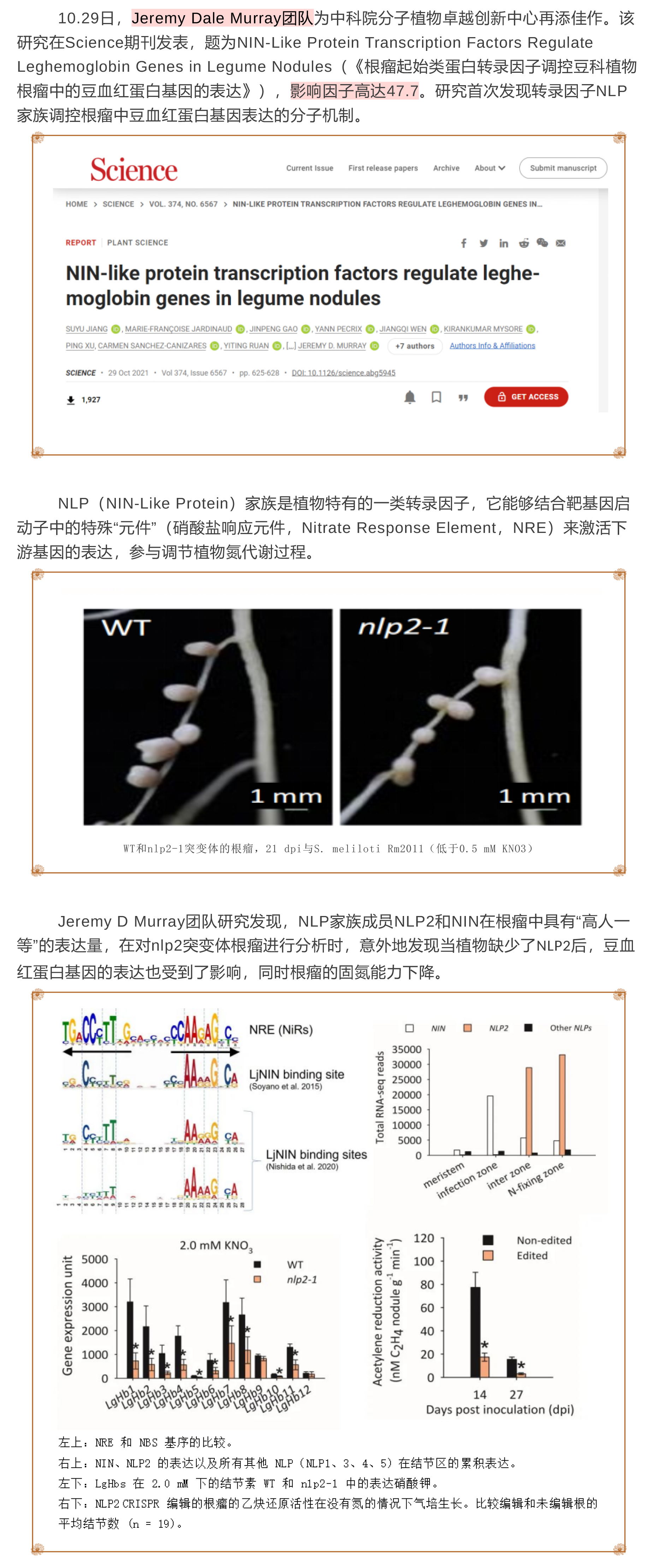 該團(tuán)隊進(jìn)一步研究發(fā)現(xiàn)NLP家族成員NIN和NLP2通過直接結(jié)合豆科植物保守的雙重硝酸鹽響應(yīng)元件(dNRE)來激活根瘤中豆血紅蛋白基因的表達(dá),平衡固氮所必需的氧氣微環(huán)境。系統(tǒng)發(fā)育分析表明,dNRE和NLP2僅在豆科植物中高度保守,暗示著其進(jìn)化有助于提高根瘤中豆血紅蛋白的表達(dá)水平。而非共生血紅蛋白的攜氧特性有助于植物在低氧環(huán)境中生存。